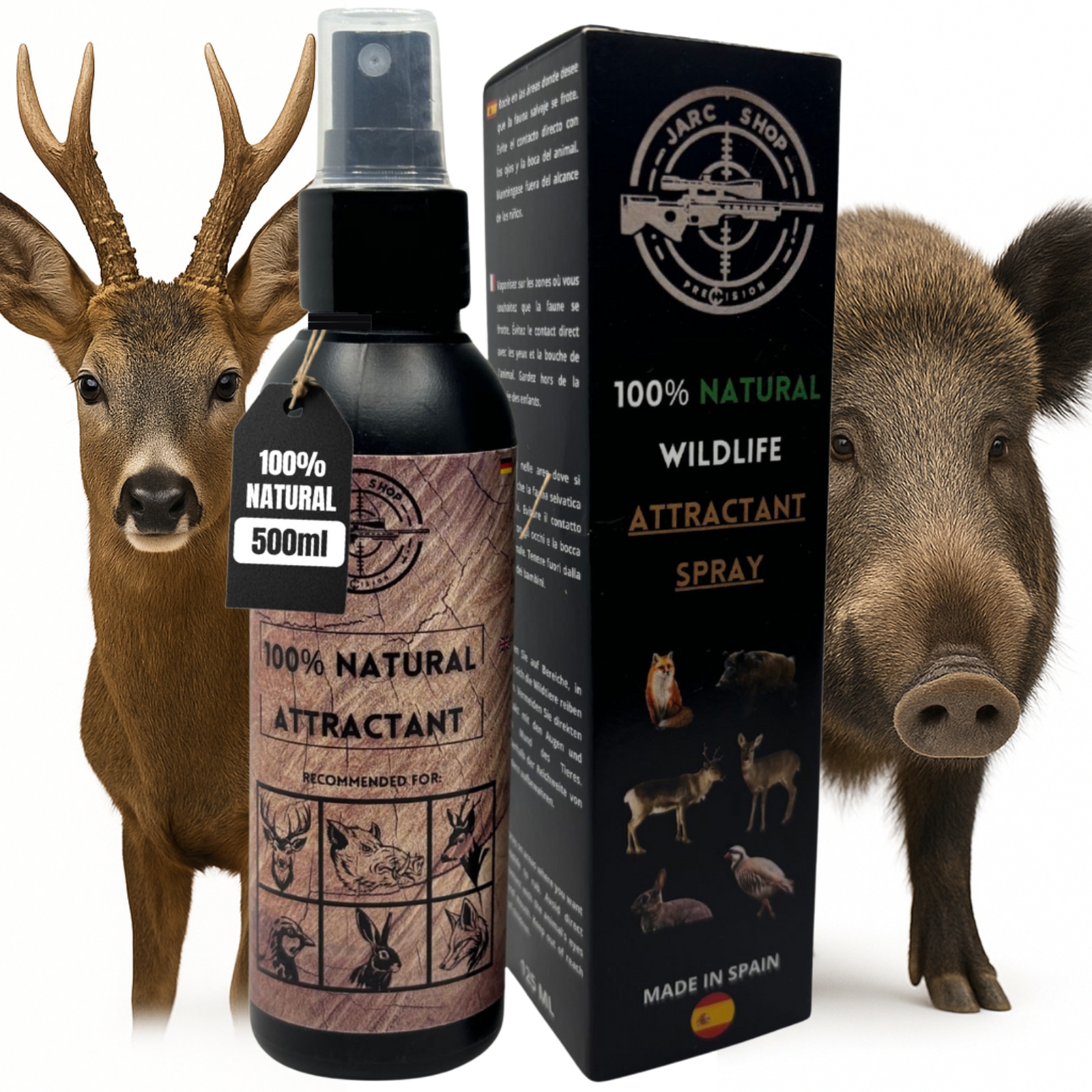 Nuestro spray de 125 ml está diseñado para proporcionar una atracción irresistible a jabalíes y corzos. Este producto, formulado con ingredientes naturales, se ha convertido en una herramienta esencial para los cazadores que buscan aumentar su éxito en el campo. Su uso es sencillo y su efectividad ha sido comprobada por expertos en caza. Ya sea que estés preparando un comedero para jabalíes o planeando un rececho de corzo, este spray es la solución ideal. Además, su versatilidad lo hace útil para atraer a otras especies como ciervos, zorros, perdices y conejos garantizando una experiencia de caza más fructífera y emocionante. No pierdas la oportunidad de mejorar tus salidas de caza con este producto de alta calidad, recomendado por cazadores experimentados y amantes de la vida silvestre.